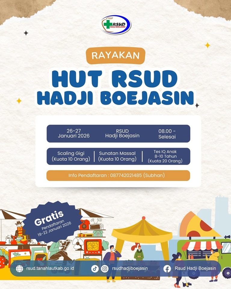 “Kami mengajak masyarakat untuk ikut memeriahkan HUT ke-42 RSUD Hadji Boejasin Pelaihari dengan memanfaatkan layanan ini. Namun perlu diingat, kuota terbatas,” tutupnya.