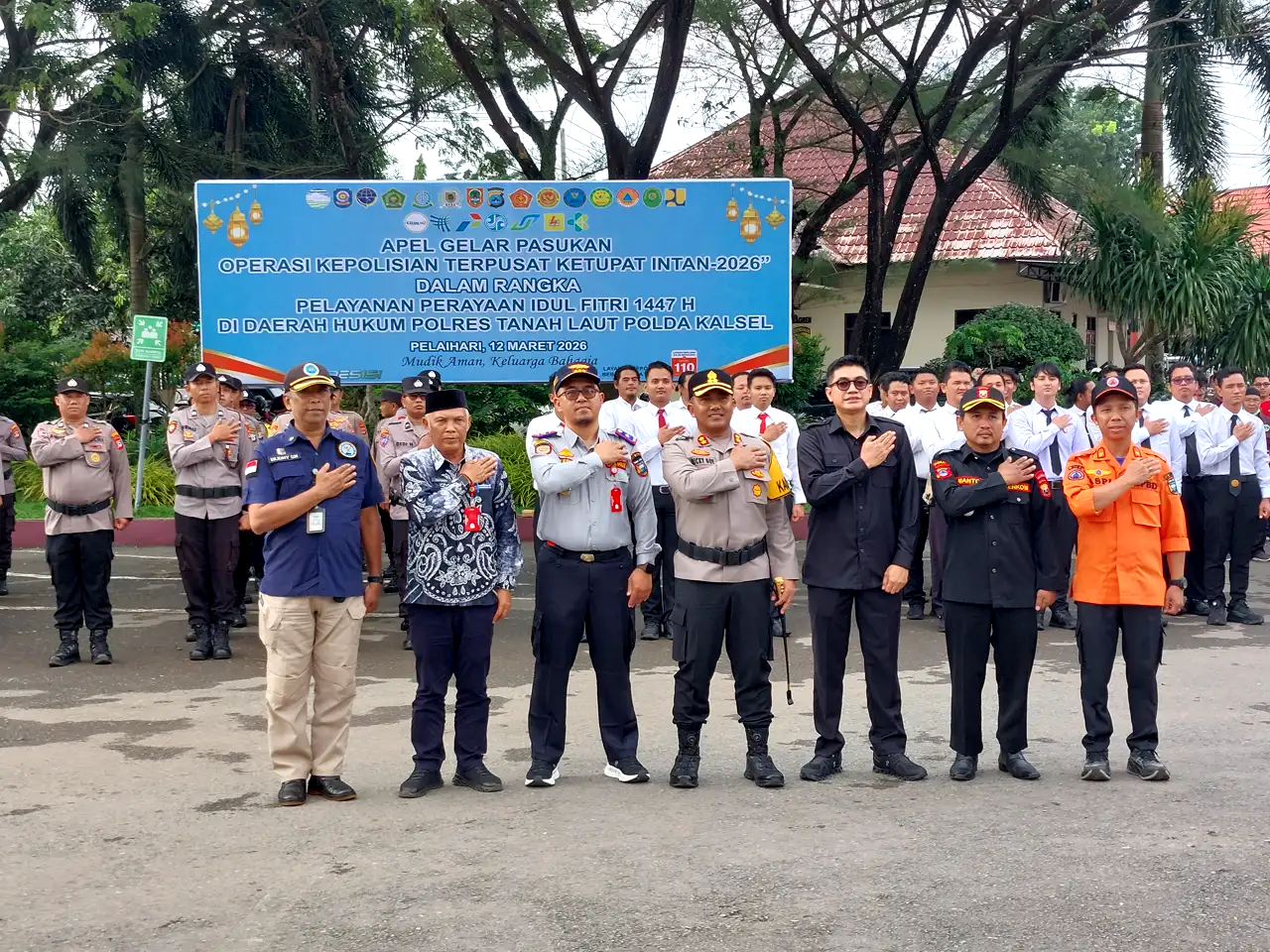 Ayobanua.com, Pelaihari – Anggota Komisi III DPRD Tanah Laut (Tala), Andi Muhammad Tessar Muharram, menghadiri Apel Gelar Pasukan Operasi Kepolisian Terpusat Ketupat Intan 2026 dalam rangka pengamanan perayaan Idulfitri 1447 Hijriah di wilayah hukum Polres Tanah Laut, Kamis (12/3/2026). Kegiatan tersebut digelar di halaman Mapolres Tanah Laut.